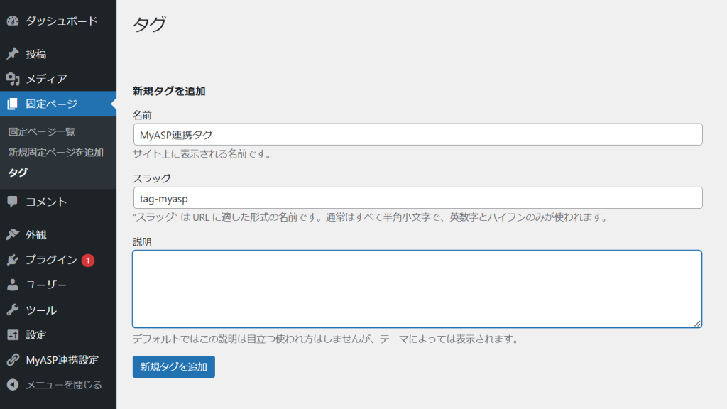 ②WordPressで「タグ」を作成し、そのタグにMyASPのシナリオを紐づけます