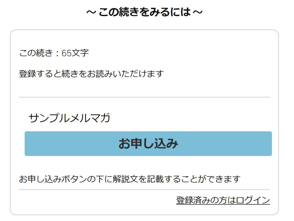 記事の前半は誰でも閲覧可能、後半は「ログインもしくはユーザー登録が必要です」を表示するページ